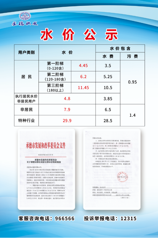 24小時(shí)供水服務(wù)熱線0314-966566 監(jiān)督電話0314-966566 電子郵箱cdszlsgs@126.com