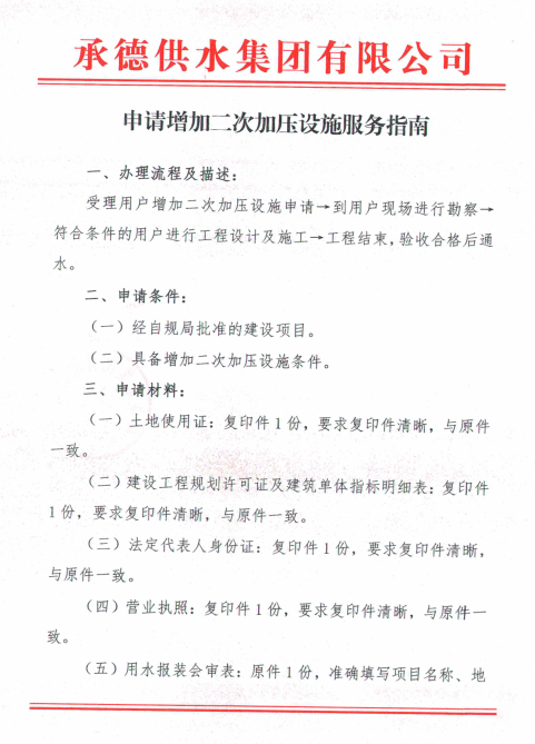 申請增加二次加壓設(shè)施服務(wù)指南